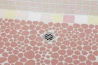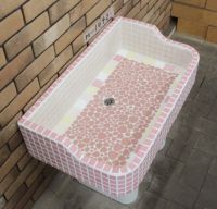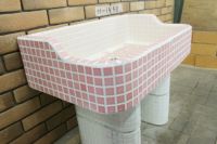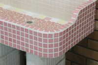 モルタル下地にモザイクタイルを張ったタイル流し台。