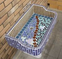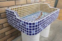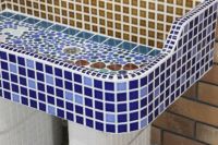 モルタル下地にモザイクタイルを張ったタイル流し台。