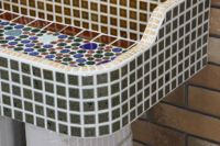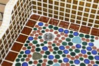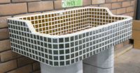 モルタル下地にモザイクタイルを張ったタイル流し台。