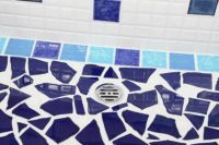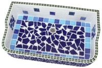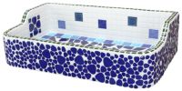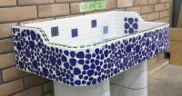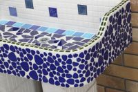 モルタル下地にモザイクタイルを張ったタイル流し台。