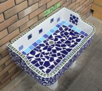 ガーデンシンク タイル 流し台 昭和レトロ モザイクタイル張り MサイズM-1475 手作りガーデンシンク タイル流し台 エクステリア お洒落 老人ホームなどにも大好評です