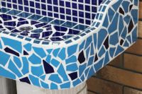 モルタル下地にモザイクタイルを張ったタイル流し台。