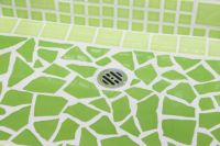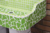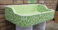 モルタル下地にモザイクタイルを張ったタイル流し台。