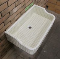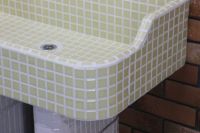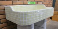 モルタル下地にモザイクタイルを張ったタイル流し台。