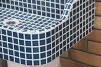 モルタル下地にモザイクタイルを張ったタイル流し台。