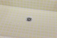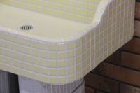 モルタル下地にモザイクタイルを張ったタイル流し台。