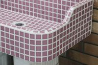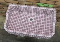 モルタル下地にモザイクタイルを張ったタイル流し台。