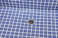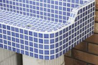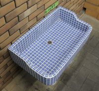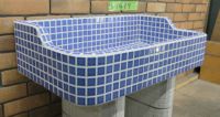 モルタル下地にモザイクタイルを張ったタイル流し台。