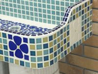 モルタル下地にモザイクタイルを張ったタイル流し台。