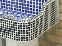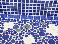 モルタル下地にモザイクタイルを張ったタイル流し台。