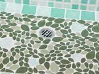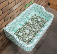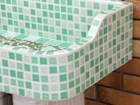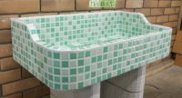 モルタル下地にモザイクタイルを張ったタイル流し台。