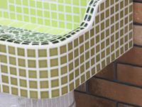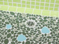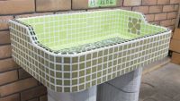 モルタル下地にモザイクタイルを張ったタイル流し台。