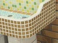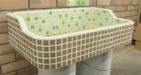 モルタル下地にモザイクタイルを張ったタイル流し台。