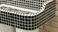 モルタル下地にモザイクタイルを張ったタイル流し台。