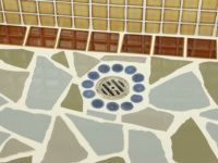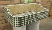 モルタル下地にモザイクタイルを張ったタイル流し台。