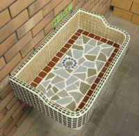 ガーデンシンク タイル 流し台 昭和レトロ モザイクタイル張り MサイズM-1526 手作りガーデンシンク タイル流し台 エクステリア お洒落 老人ホームなどにも大好評です