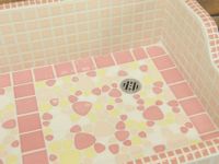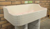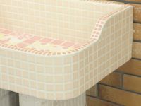 モルタル下地にモザイクタイルを張ったタイル流し台。