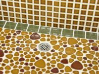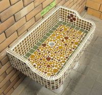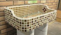 モルタル下地にモザイクタイルを張ったタイル流し台。