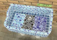 ガーデンシンク タイル 流し台 昭和レトロ モザイクタイル張り MサイズM-1533 手作りガーデンシンク タイル流し台 エクステリア お洒落 老人ホームなどにも大好評です