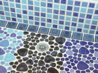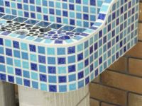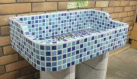 モルタル下地にモザイクタイルを張ったタイル流し台。