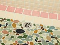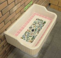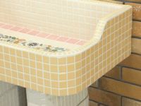 モルタル下地にモザイクタイルを張ったタイル流し台。