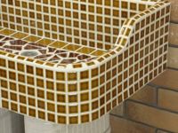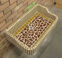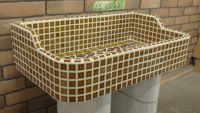 モルタル下地にモザイクタイルを張ったタイル流し台。