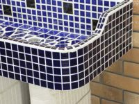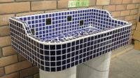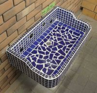 モルタル下地にモザイクタイルを張ったタイル流し台。