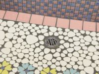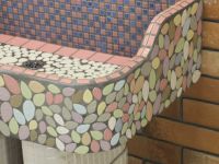 モルタル下地にモザイクタイルを張ったタイル流し台。