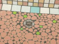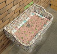 モルタル下地にモザイクタイルを張ったタイル流し台。