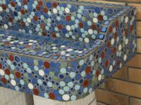 モルタル下地にモザイクタイルを張ったタイル流し台。