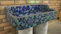 モルタル下地にモザイクタイルを張ったタイル流し台。