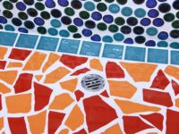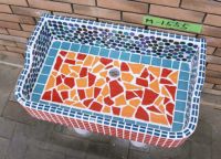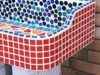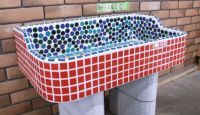 モルタル下地にモザイクタイルを張ったタイル流し台。