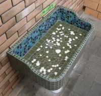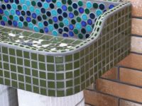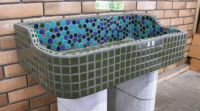 モルタル下地にモザイクタイルを張ったタイル流し台。