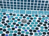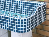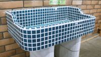 モルタル下地にモザイクタイルを張ったタイル流し台。