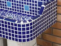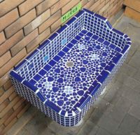 モルタル下地にモザイクタイルを張ったタイル流し台。