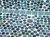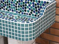モルタル下地にモザイクタイルを張ったタイル流し台。