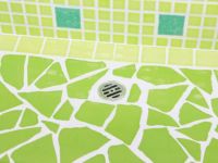 モルタル下地にモザイクタイルを張ったタイル流し台。