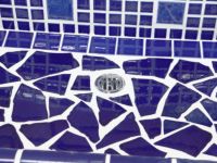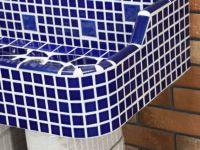 モルタル下地にモザイクタイルを張ったタイル流し台。