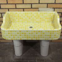 ガーデンシンク タイル 流し台 昭和レトロなタイル流し台 Mサイズ 窯変ミックスカラー スーパーホワイト生地を使用 送料無料 シンク タイル流し エクステリア お洒落 老人ホームなどにも大好評です