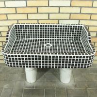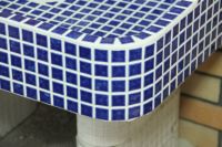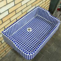 モルタル下地にモザイクタイルを張ったタイル流し台。