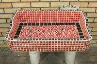 モルタル下地にモザイクタイルを張ったタイル流し台。 すべて職人が丹精を込めて製作している1点ものです。 潮風があたる場所や、気候条件が悪い外部でのご使用にも向いています。 手作りのためタイル目地は多少貫乳が入っております。 重たいので移動や設置は注意して行って下さい。 運搬は細心の注意をはらっておりますが、運送等で割れた場合は代品をお送りいたします。 その際は受注生産となりますので、一ヶ月程お時間をいただく場合がございます。 またすべて手作りのため、全く同じもののご用意はいたしかねますのでご了承ください。