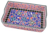 モルタル下地にモザイクタイルを張ったタイル流し台。