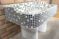 モルタル下地にモザイクタイルを張ったタイル流し台。 すべて職人が丹精を込めて製作している1点ものです。 潮風があたる場所や、気候条件が悪い外部でのご使用にも向いています。 手作りのためタイル目地は多少貫乳が入っております。 重たいので移動や設置は注意して行って下さい。 運搬は細心の注意をはらっておりますが、運送等で割れた場合は代品をお送りいたします。 その際は受注生産となりますので、一ヶ月程お時間をいただく場合がございます。 またすべて手作りのため、全く同じもののご用意はいたしかねますのでご了承ください。