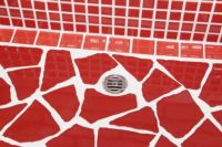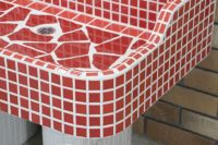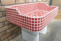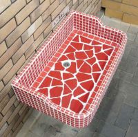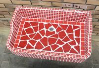 モルタル下地にモザイクタイルを張ったタイル流し台。