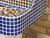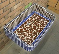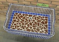 モルタル下地にモザイクタイルを張ったタイル流し台。
