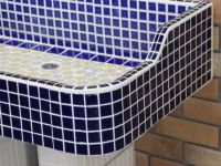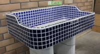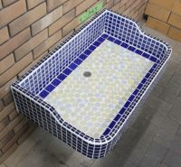 モルタル下地にモザイクタイルを張ったタイル流し台。