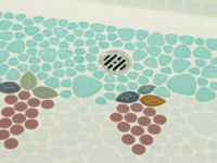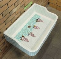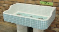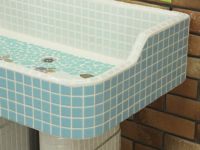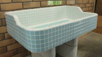 モルタル下地にモザイクタイルを張ったタイル流し台。