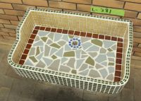 ガーデンシンク タイル Lサイズ-381 昭和レトロ モザイクタイル張り流し台