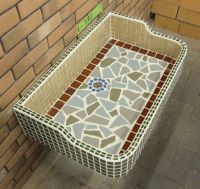 モルタル下地にモザイクタイルを張ったタイル流し台。
