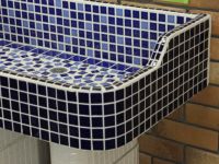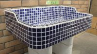 モルタル下地にモザイクタイルを張ったタイル流し台。
